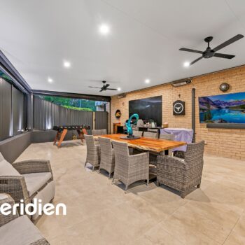 • Outdoors you can entertain effortlessly all year round under the magnificent alfresco. Finished with an insulated roof and gyprock lined ceiling it’s complete with LED downlights, ceiling fans and wall heaters. The automatic blinds will protect you from the elements and help make this space a superb living addition. With quality tiles underfoot, and a built-in Weber BBQ it’s the perfect outdoor space to relax.