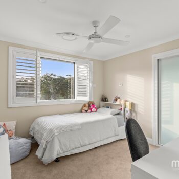 • A modern staircase with elegant light fixture leads to an upstairs rumpus room/teenage retreat with skylight and built-in storage. The four sumptuous bedrooms, all boast with ceiling fans and the two rear facing bedrooms feature automatic block out shutters.