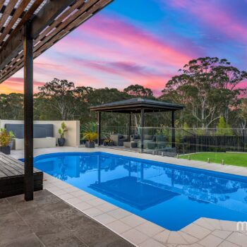 • The beautifully designed and perfectly landscaped backyard has it all! There is plenty of lush grass for the kids and family pets to enjoy plus a sparkling, salt water inground pool just in time for summer. The private bushland backdrop is stunning, and you feel far removed from suburbia, as you as you relax in your cabana and soak up the serenity.